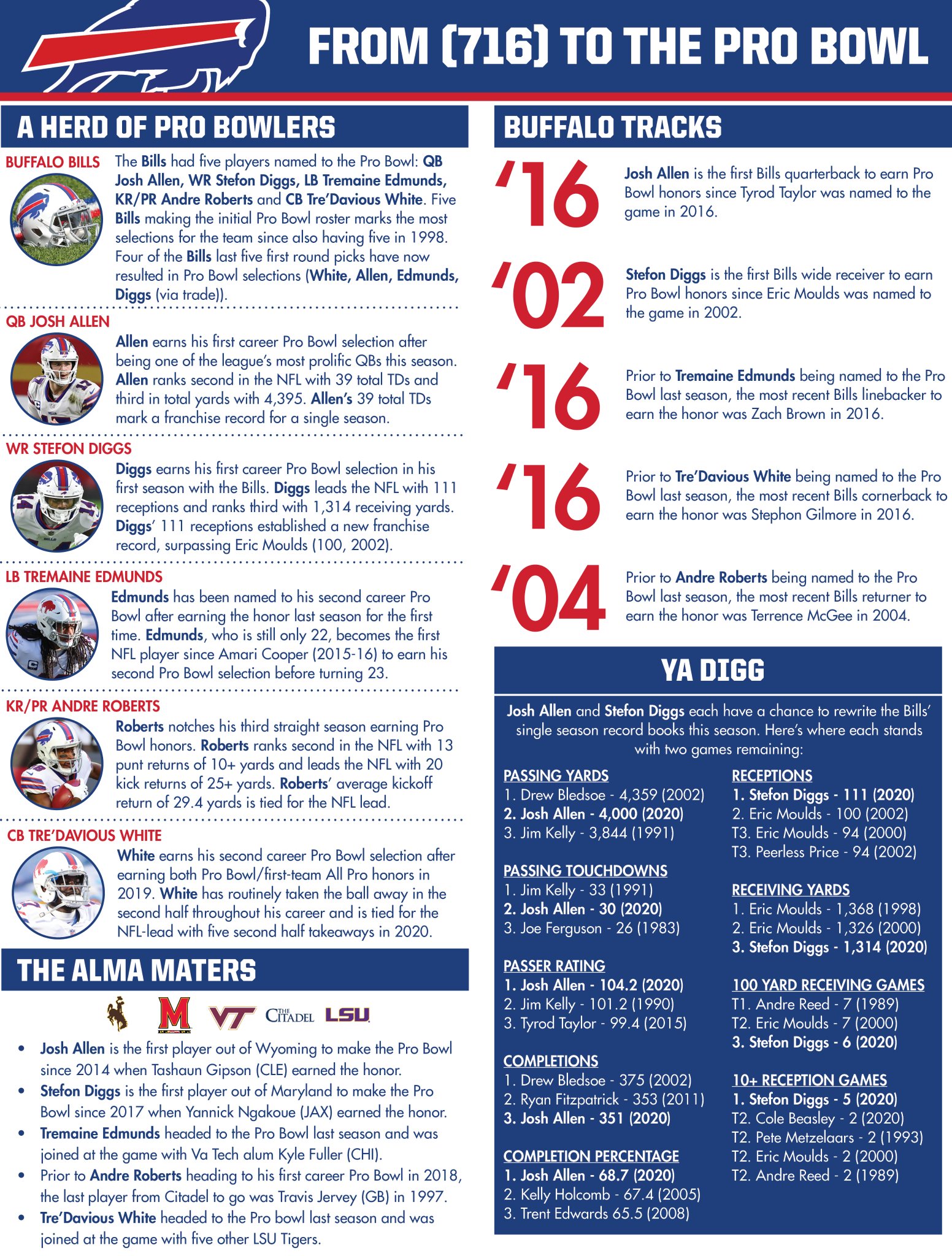 Buffalo Bills Pr On Twitter Qb Josh Allen Wr Stefon Diggs Lb Tremaine Edmunds Kr Pr Andre Roberts And Cb Tre Davious White Have Been Named To The Pro Bowl Five Bills Making The Initial Pro Bowl Roster Marks The Most Selections For The Team
